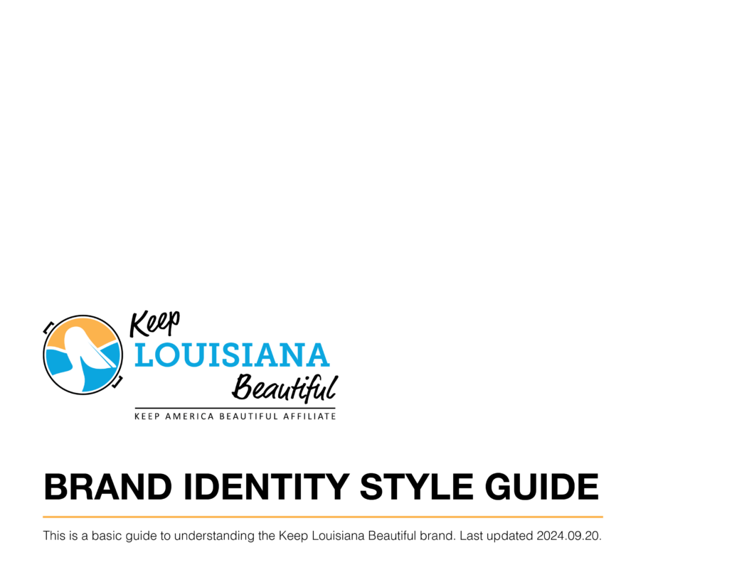 On this page, you will find Keep Louisiana Beautiful’s brand identity style guides, logo kits, and links to marketing toolkits. The Brand Center is a great resource if you are:
